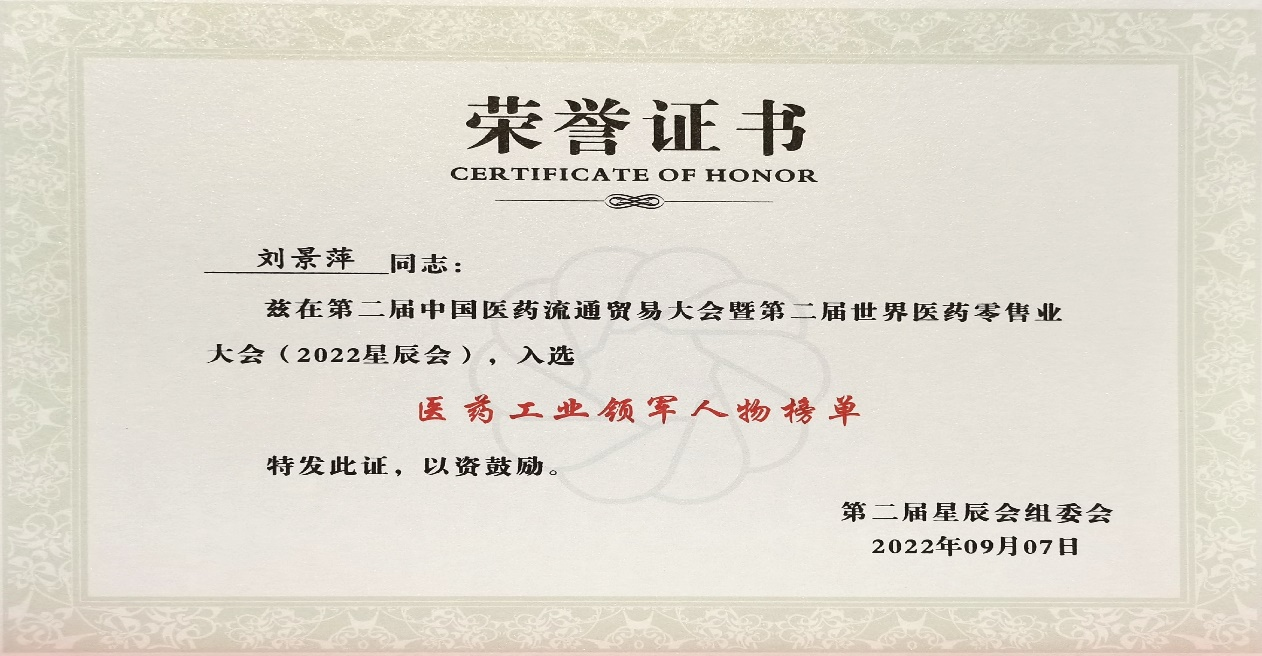 本次星辰会期间,k豆钱包斩获颇丰,获得多项行业奖项及荣誉。在开幕式上,刘景萍董事长荣获“医药工业领军人物”称号。